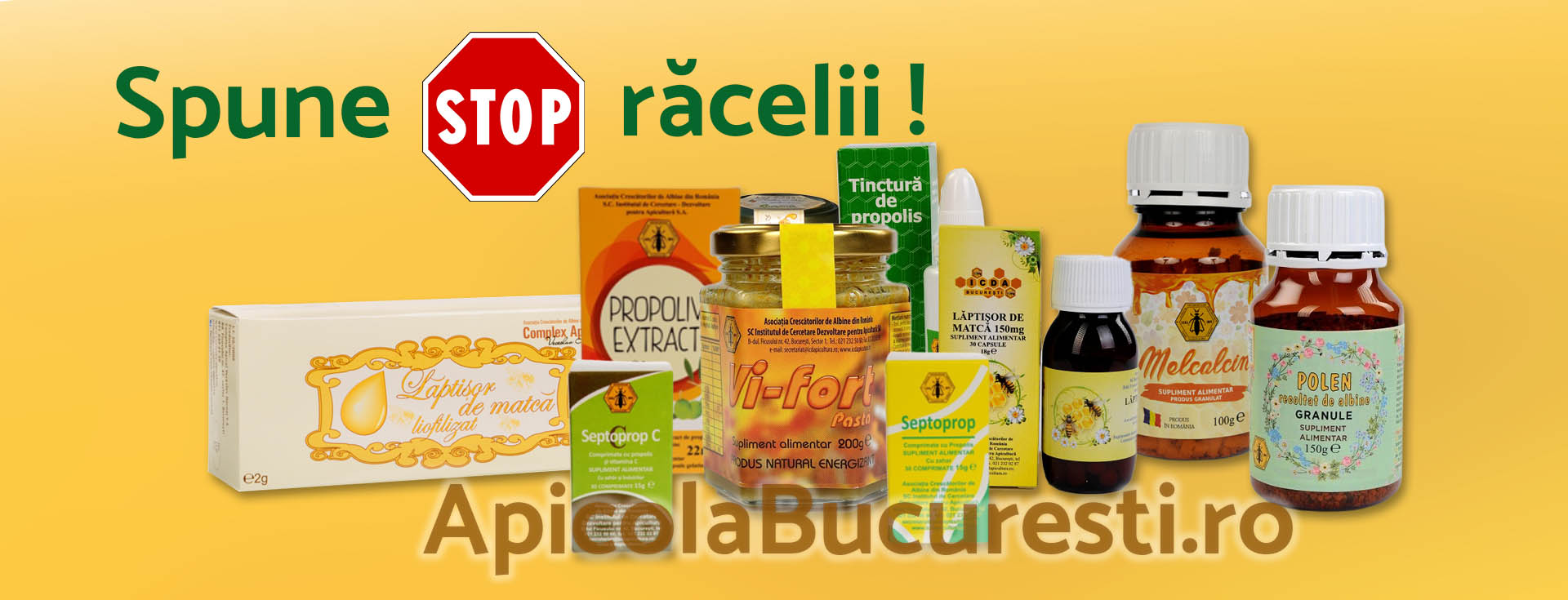 Apicola București comercializează produse apicole de cea mai bună calitate, miere de albine, polen, propolis, ceaiuri, utilaje si accesorii pentru stupine, produse ale stupului si derivate energizante pentru diverse afectiuni, tincturi de plante, uleiuri de plante, minerale si vitamine obtinute din plante naturale, cosmetice pe baza de produse apicole precum și medicamente de uz apicol. Din anul 2012, pentru a veni în sprijinul celor ce doresc să descopere tainele apiculturii, oferim și cursuri de calificare în domeniul apicol.